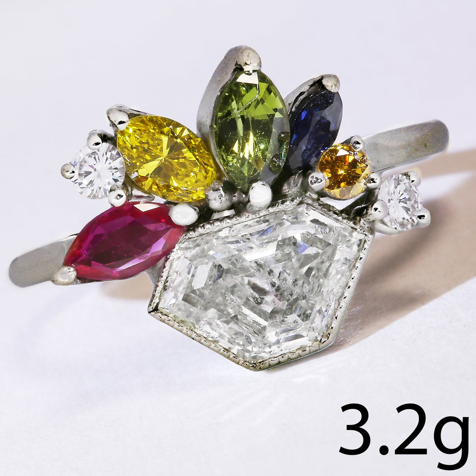 A Fine 14K White Gold Diamond Emerald Ruby and Sapphire Tutti Frutti RingAlma Auctioneers4.3(61)$3005 days Left