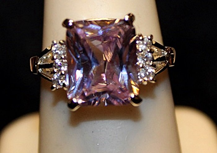 SoldLAVENDER JADE & WHITE TOPAZ GOLD OVER S.S. RINGLAVENDER JADE & WHITE TOPAZ GOLD PLATED STERLING SIZE 7.5 RING.See Sold Price