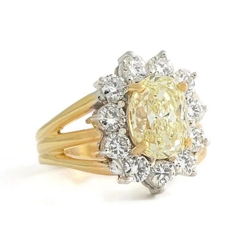 Fancy Intense Oval Yellow Diamond Ring with Side White Ovals 1.3 CaratsBidhaus4.2(840)$1003 days Left