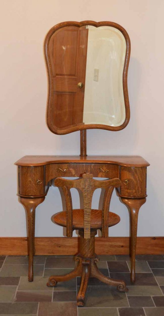 Fancy Oak Dressing Vanity with Swivel Chair