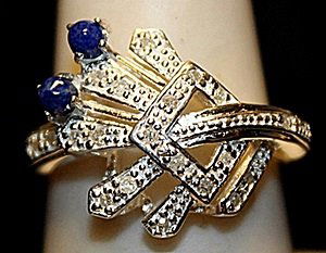 Fancy Sapphire with Diamonds Sterling Silver Ring.