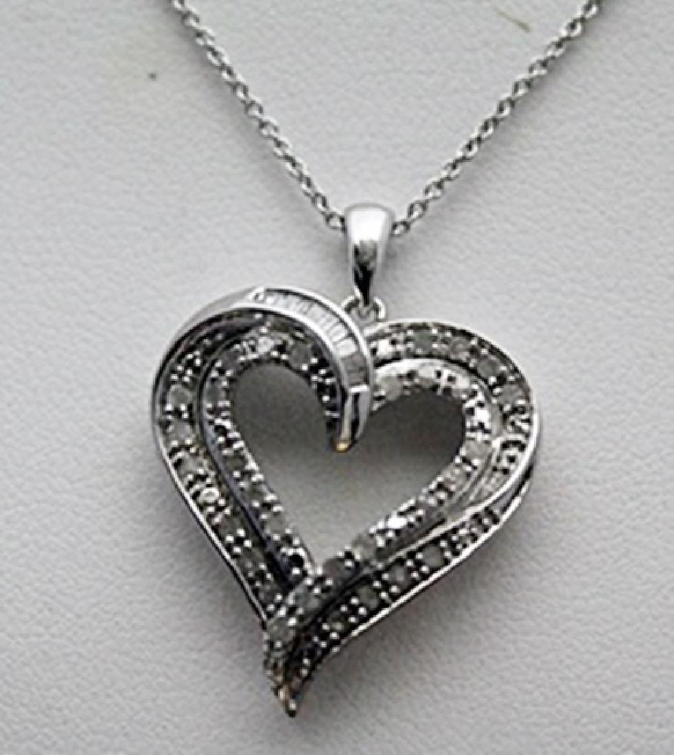 Fancy Silver Heart Shape Necklace with Diamonds