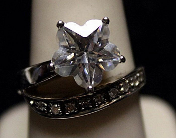 Fancy Star Shaped White Sapphire SS Ring. (735L)