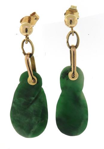 Vintage 14k Yellow Gold Green Jade Dangle Earrings