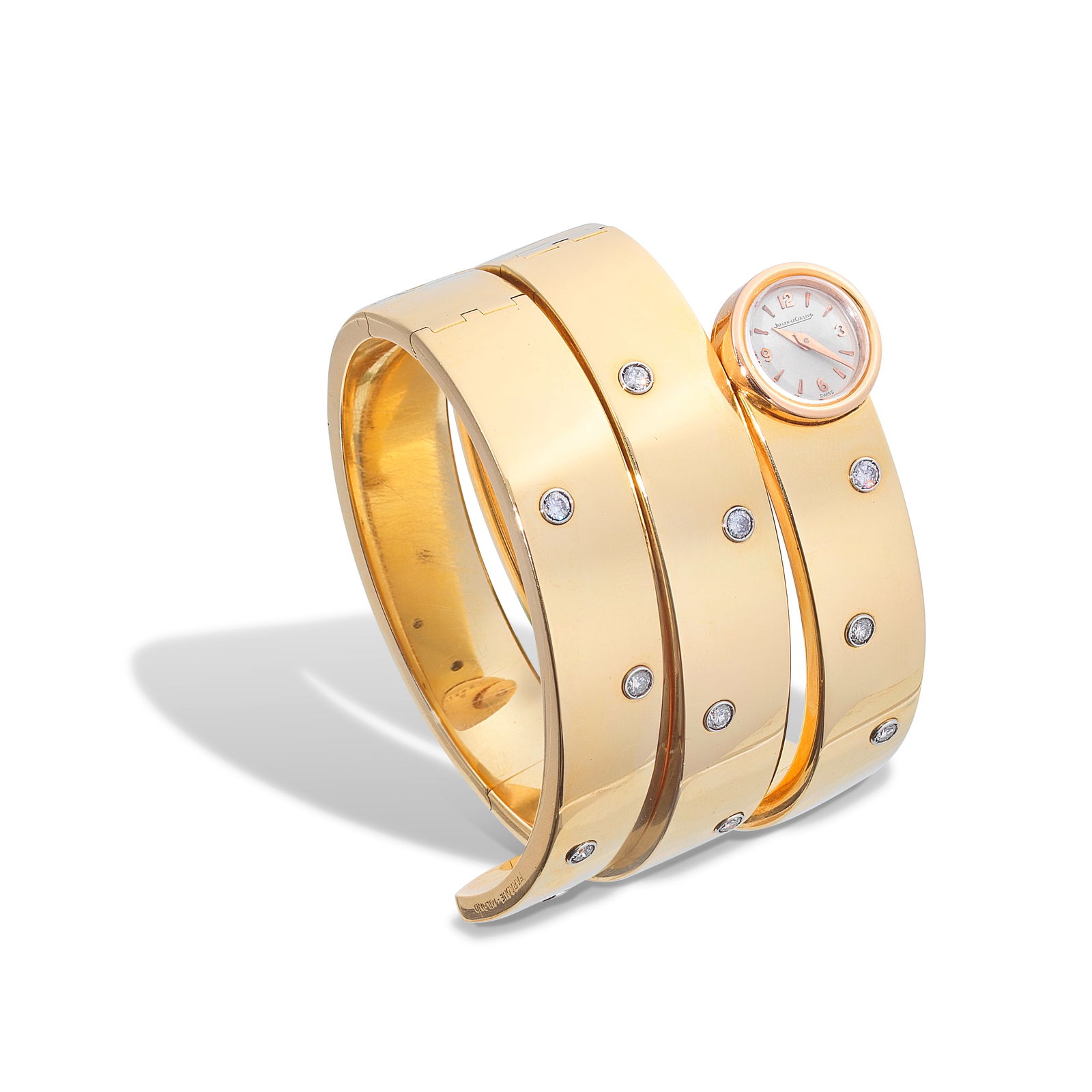 FARAONE/JAEGER LECOULTRE: DIAMOND BANGLE/WATCH, CIRCA 1980