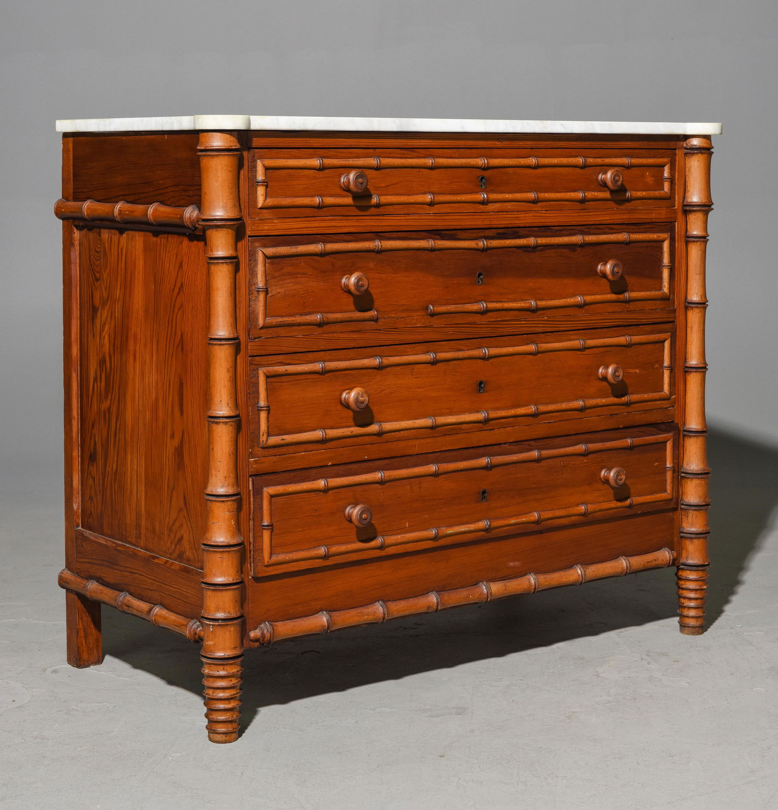 Faux Bamboo White Marble Top 4 Drawers Chest