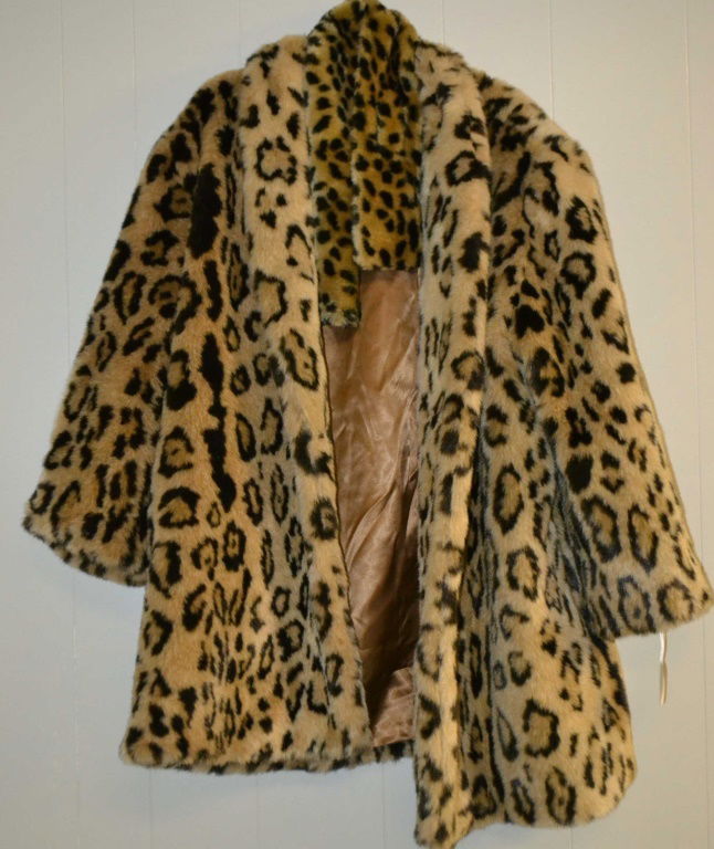 Faux Leopard Coat 3/4 Length Swing Size Large