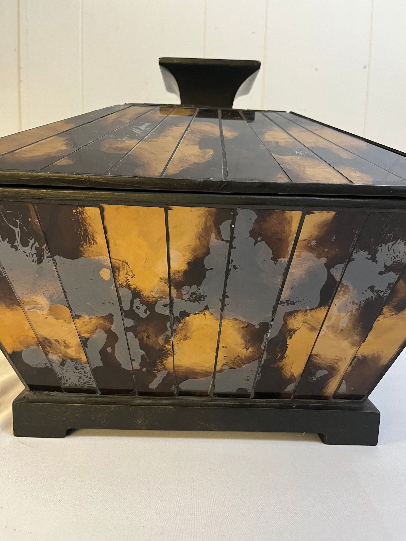 Faux Tortoise shell Reverse Painted Vintage Cachet Box with Lid