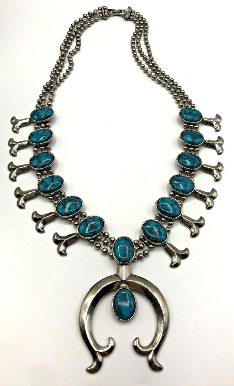 Navajo Native Indian Sterling Silver Turquoise Squash Blossom NecklaceChairish Auctions4.5(10.3k)$1,100