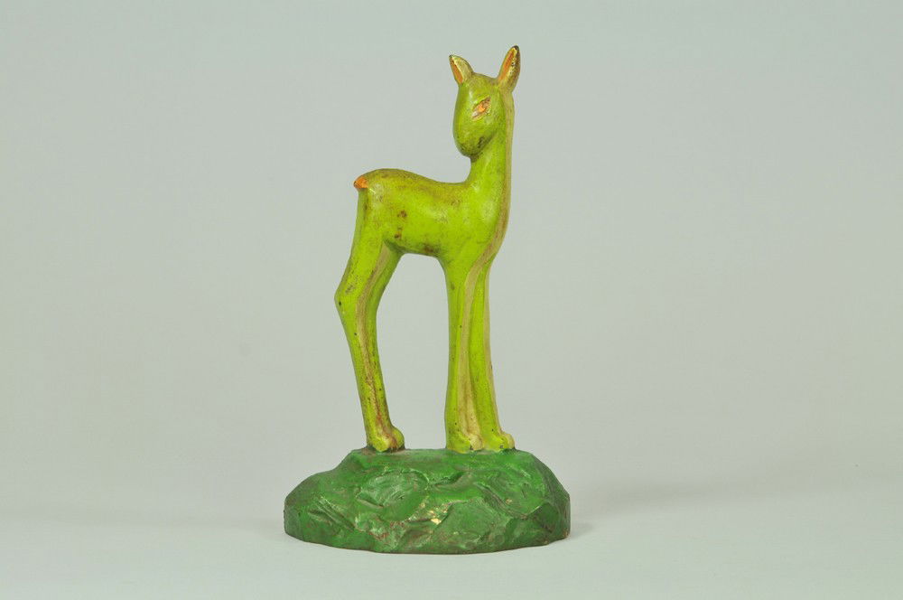 A BRONZE DEER HOLDING LINGZHI FUNGUS FIGURINE