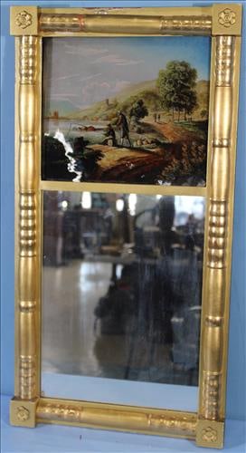 Federal 2 section mirror with reverse painted scene