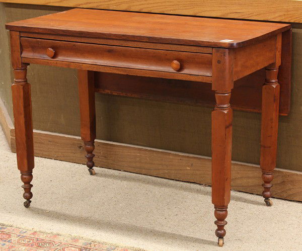 SoldFederal Drop Leaf One Drawer Work TableFederal One drawer work table w drop leaves. Closed width 20"See Sold Price