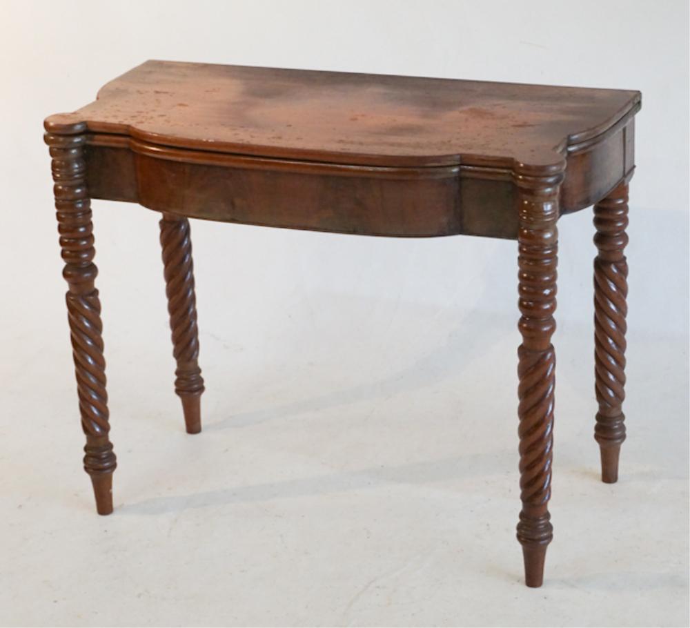 A Federal Mahogany Card Table, Probably Pennsylvania, c. 18105 days LeftA GEORGE II CARVED MAHOGANY CARD TABLE, CIRCA 1750Mar 24, 2026American Federal Inlaid Mahogany Games TableMar 26, 2026Boston Federal Mahogany Porringer Top Card Table, Attributed to John and Thomas SeymourMar 26, 2026Restored 19th Century Sheraton Mahogany Games Table 36 x 18.5 x 29.53 days LeftFederal Style Satinwood Inlaid Walnut Card Table5 days LeftA GEORGE III SATINWOOD, BURR YEW, HAREWOOD AND PARQUETRY DEMI LUNE CARD TABLE, CIRCA 1790Mar 25, 2026Mahogany Sheraton Card Table with Turret Top and Inlay Circa 1830Mar 21, 202619th Century Antique Sheraton Mahogany Folding Card Table C1830Mar 18, 2026A Pennsylvania Pine Dough Table, c. 18305 days LeftPEMBROKE MAHOGANY DROP-LEAF TABLE2 days LeftSHERATON MAHOGANY DROP LEAF STANDMar 20, 2026A WILLIAM IV MAHOGANY LIBRARY OR WRITING TABLE, CIRCA 1835Mar 25, 2026Irish George II Figured Walnut Hairy Paw Concertina Games TableMar 25, 2026FEDERAL DROP LEAF STANDMar 20, 2026New Hampshire Sheraton Inlaid-Mahogany Card Table5 days Left