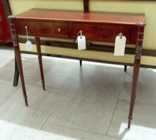 Baker Furniture (American) Regency Style Mahogany Drop-Leaf Console Table H 18.25" W 44" Depth 16"5 days LeftAntique Federal Mahogany Hall Table with Hinged Top and Drawer C19305 days LeftCarved Mahogany & Rosewood Banded Top Two Drawer Ball & Claw Writing Table by Globe Colony Tables2 days Left19th Century Mahogany One Drawer Drop Leaf Table2 days LeftMaitland Smith Regency Mahogany Console Table with Lion Head Hardware5 days LeftHekman George III Console Table Mahogany with Dovetailed DrawersFeb 27, 202619th Century Mahogany Drop Leaf One Drawer Table2 days LeftA LATE REGENCY MAHOGANY SOFA TABLE, CIRCA 1820Mar 03, 2026Mahogany Urn Inlay Fold Over Top Game Table2 days LeftFEDERAL BOSTON SEYMOUR WORKSHOP MAHOGANY SIDEBOARD.Feb 25, 202619th Century Mahogany Drop Leaf Writing Table with Two Drawers2 days LeftGeorge III leather top mahogany writing table5 days LeftMahogany Hall Console Table with Inlaid Detailing and Tapered LegsMar 04, 2026French Louis XV Style Mahogany Writing Table, 20th c., H.- 29 1/4 in., W.- 41 1/4 in., D.- 19 3/4Feb 27, 2026ANTQ FEDERAL PERIOD MAHOGANY FLIP TOP DEMILUNE TABLEMar 07, 2026French Empire Marble Top Mahogany Pier Table, early to mid 19th c., H.- 36 1/2 in., W.- 45 1/2 in.,Feb 27, 2026