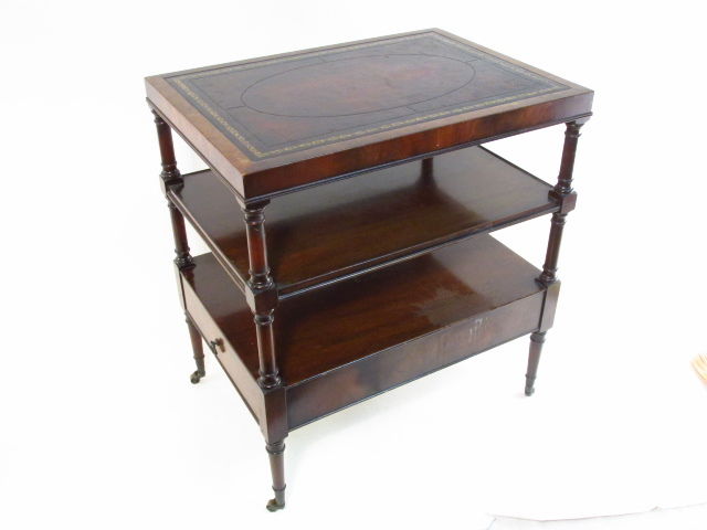 FEDERAL STYLE LEATHER TOP THREE TIER SIDE TABLE