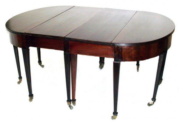 FEDERAL TWO PART DEMILUNE MAHOGANY DINING TABLE