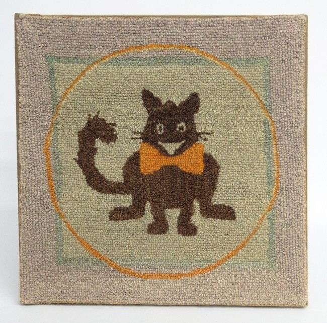 SoldC1930 green eyed cat hand hooked wool rugTitle: C1930 green eyed cat hand hooked wool rug Dimensions: 24" x 32". Provenance/Additional Info: Well done with the back as nice as the front Shipping: Domestic: Flat-rate of $25.00 to anywhere witSee Sold Price