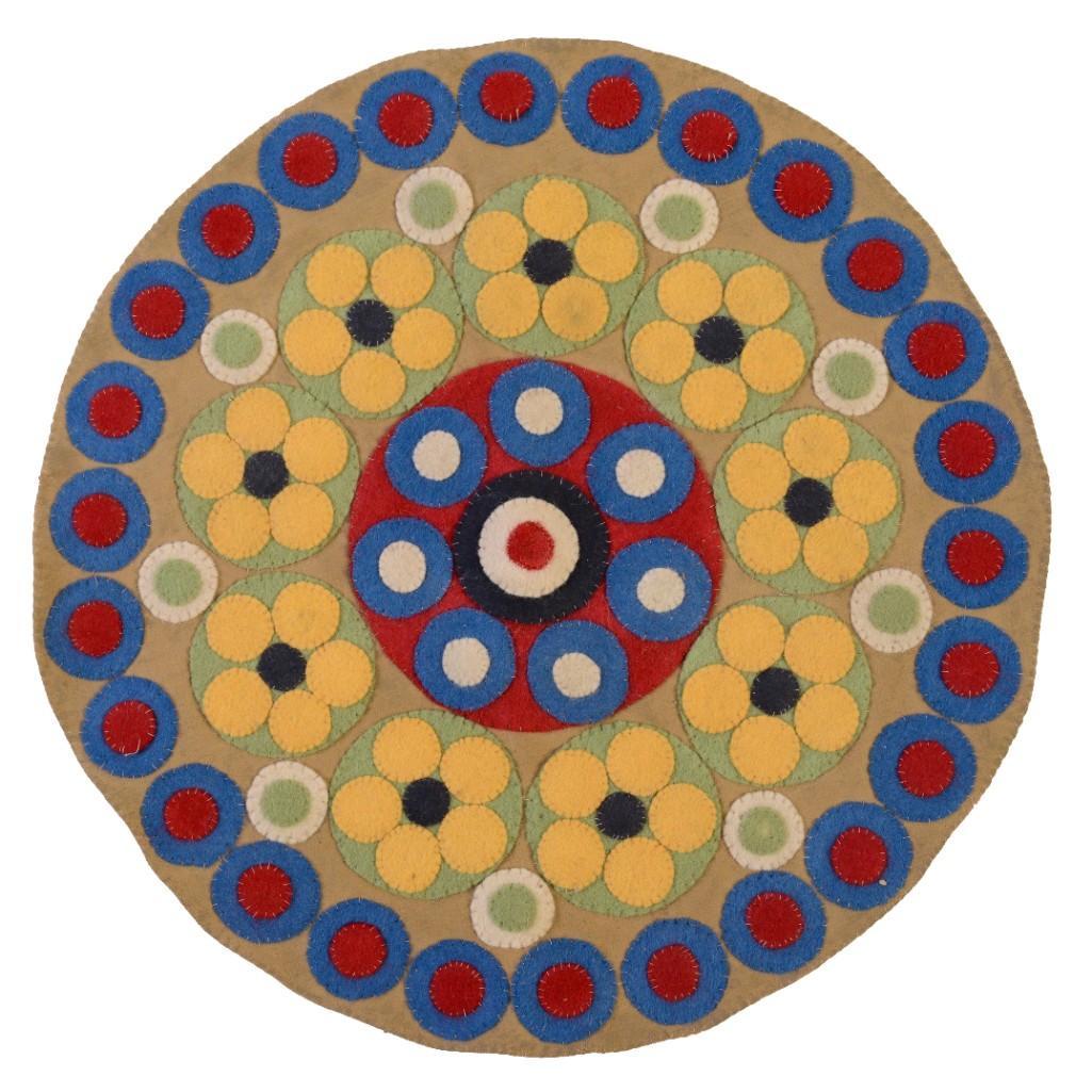 SoldA small hand sewn felt penny table rug, probably late 19th to early 20th century in very goodA small hand sewn felt penny table rug, probably late 19th to early 20th century in very good condition with no damage. Measures 17" x 15 3/4". Provenance: From the Doris and Jerry Soldner collection,See Sold Price