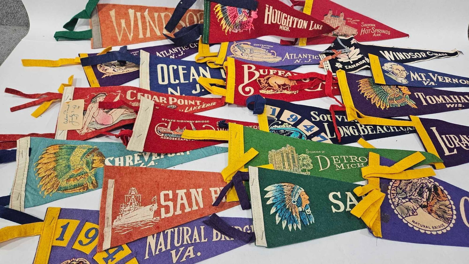 Early 20th C Souvenir Pennants (10)