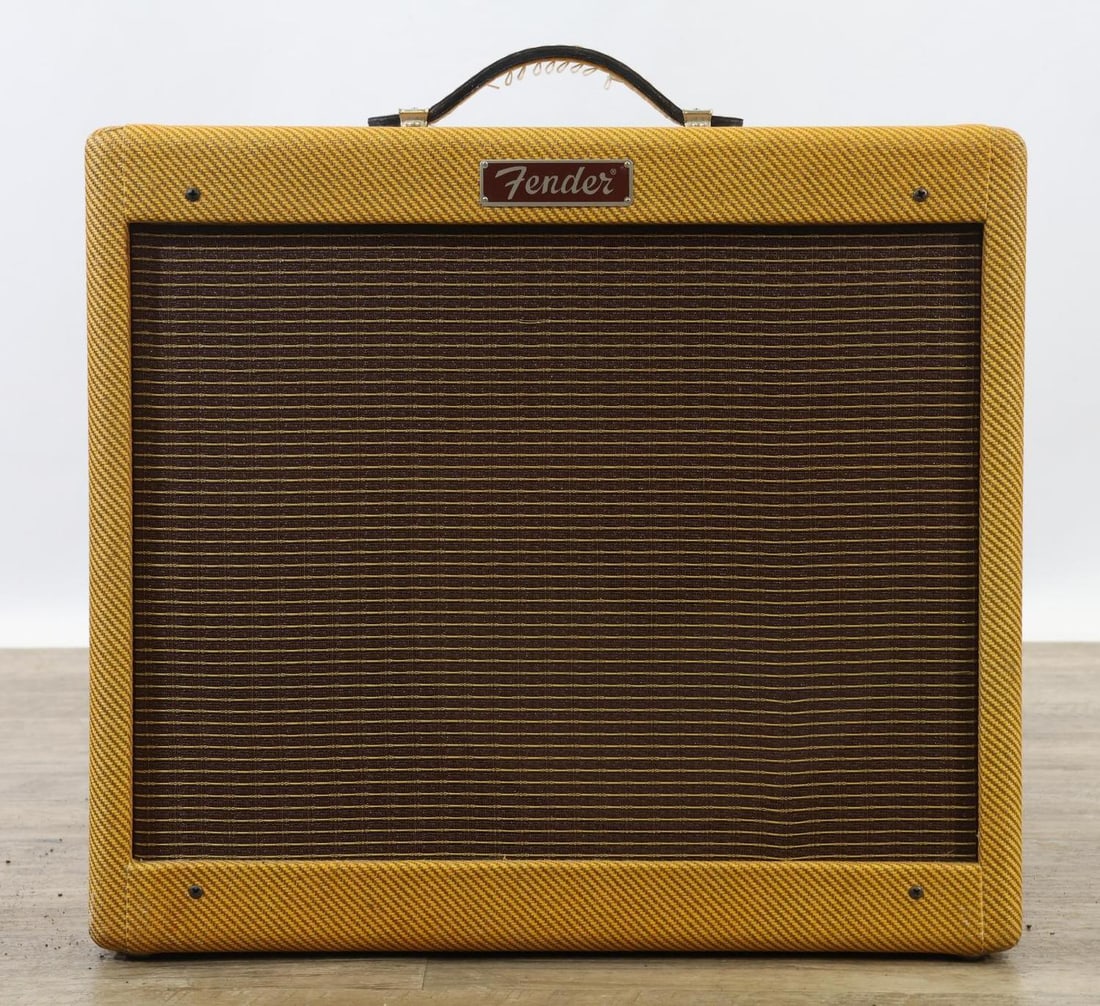 SoldFENDER LIMITED ED. BLUES JUNIOR TWEED AMPFender Blues Junior Special Edition 15W Tweed Guitar Amplifier with special design Jensen speaker. 16"H, 18.25"W, 10"D 31lbs 3oz **Provenance: an Austin, Texas collection** Start Price: $350.00See Sold Price