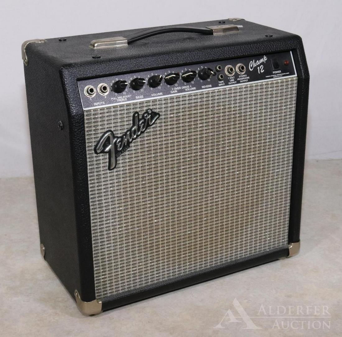 Chuck Berry Signed Electric GuitarJul 20, 2025Vintage Fender Twin Reverb Amplifier, working from local Musicians estate, front grill has wear, as4 days LeftFENDER RUMBLE 40 AMP5 days LeftFENDER CHAMP AMP5 days LeftA Peavey Classic 30 electric guitar amplifier 21st centuryDavid Eden D-410T Bass Speaker Cabinet with Four 10-Inch SpeakersFeb 17, 2026Crate B 10XL Amplifier WorksFeb 09, 2026STRATOCASTER STYLE ELECTRIC SIX STRING BASS GUITAR AND DRIVE CD 300B BASS AMPLIFIERMARSHALL AMP & SPEAKER5 days LeftCRATE SPEAKER ENCLOSURE, Model Number GE-412RS, Serial Number E4RSC10067…..from local estate of a4 days LeftA fender Squire Telecaster custom, Of recent manufactureFENDER Squire Minin electric guitar, very nice condition. In Ibanez soft guitar case, Serial Number4 days LeftFENDER Stratocaster guitar, Serial Number S772410, no case, nice overall condition, some crackling4 days LeftAmped Up Organizer: Rock Your KeysFeb 25, 2026KUSTOM KMA 100 keyboard-mixer amplifier, working order, from local Musicians estate….nice overall4 days LeftSQUIER JAGUAR BASS GUITAR5 days Left