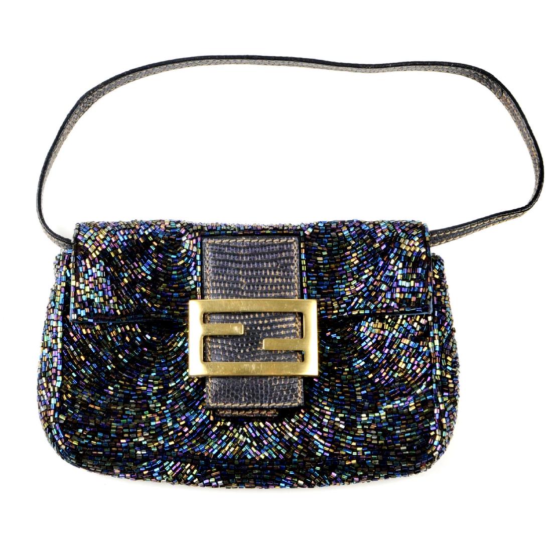 Fendi Baguette Medium Black Cotton Shoulder Bag with Beaded EmbroideryMynt Auctions4.4(835)$1007 days Left