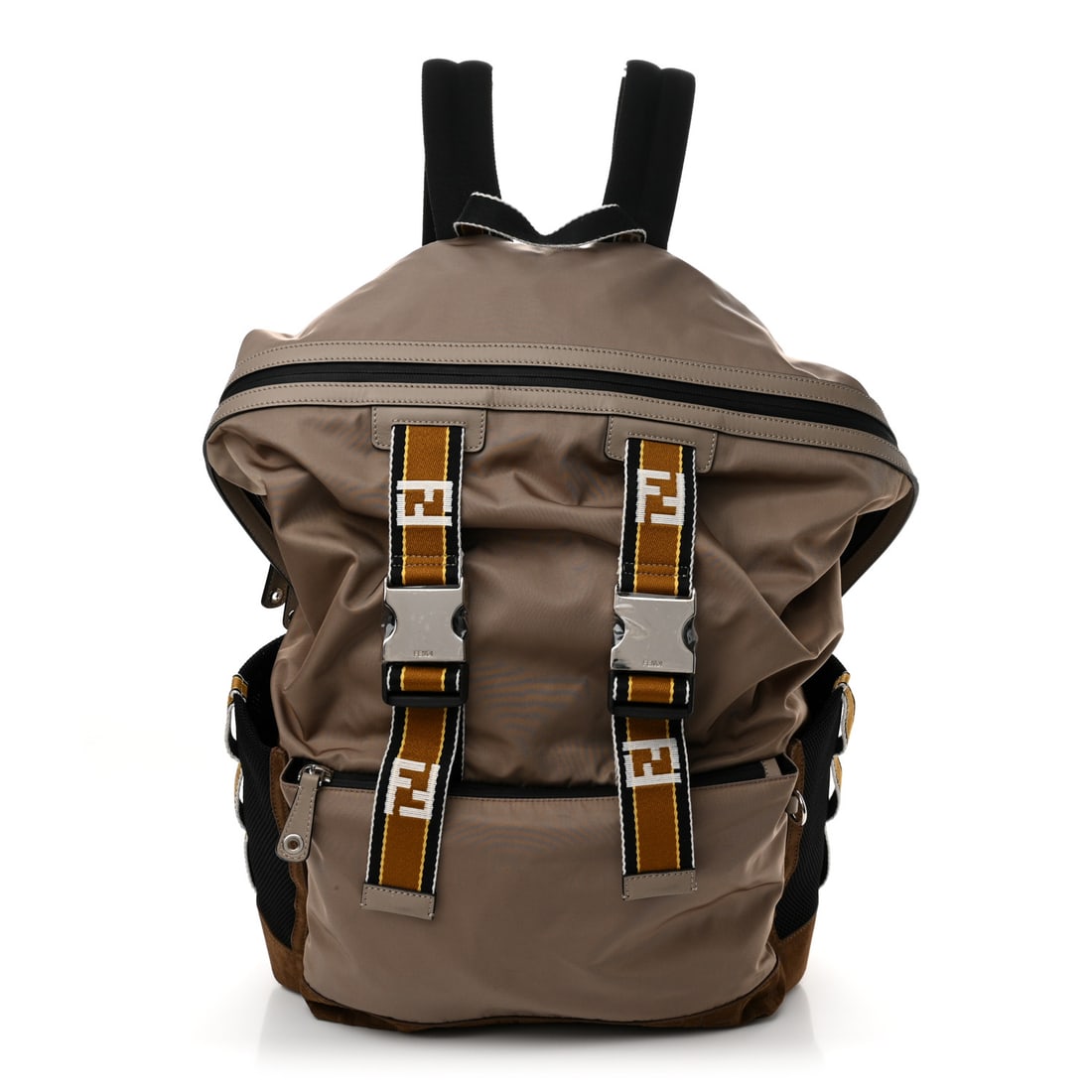 FENDI Pecan PVC Canvas Backpack Brown Black Gold Authentic