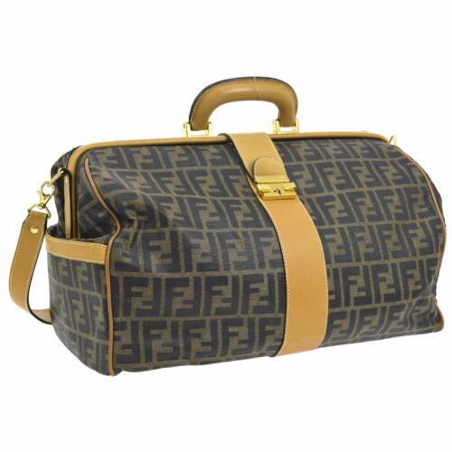 FENDI Zucca Canvas Boston Bag Black Brown Italy Auth