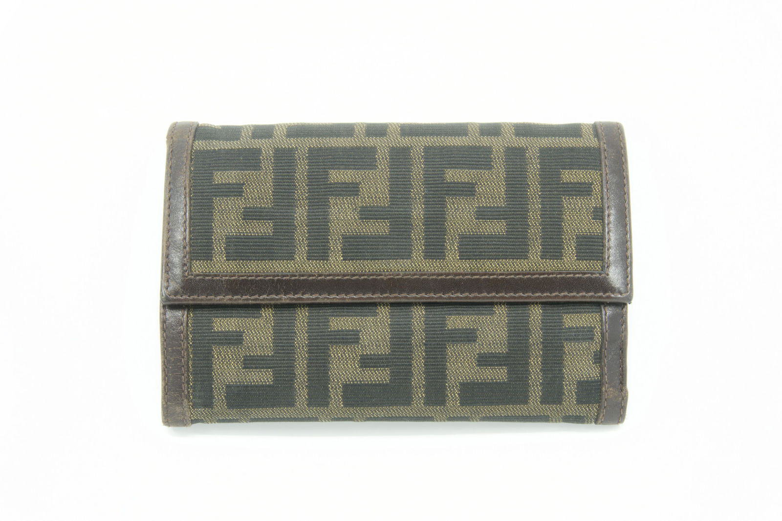 Fendi Zucca Pattern Brown Canvas Folding Wallet