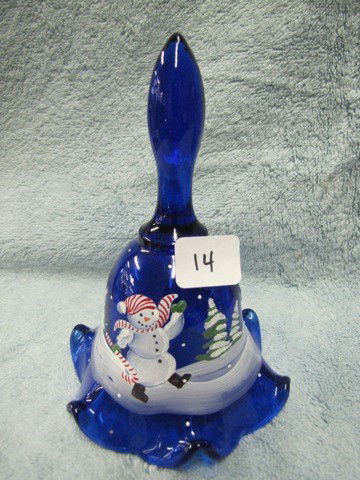 Fenton 6" cobalt bell w/snowman