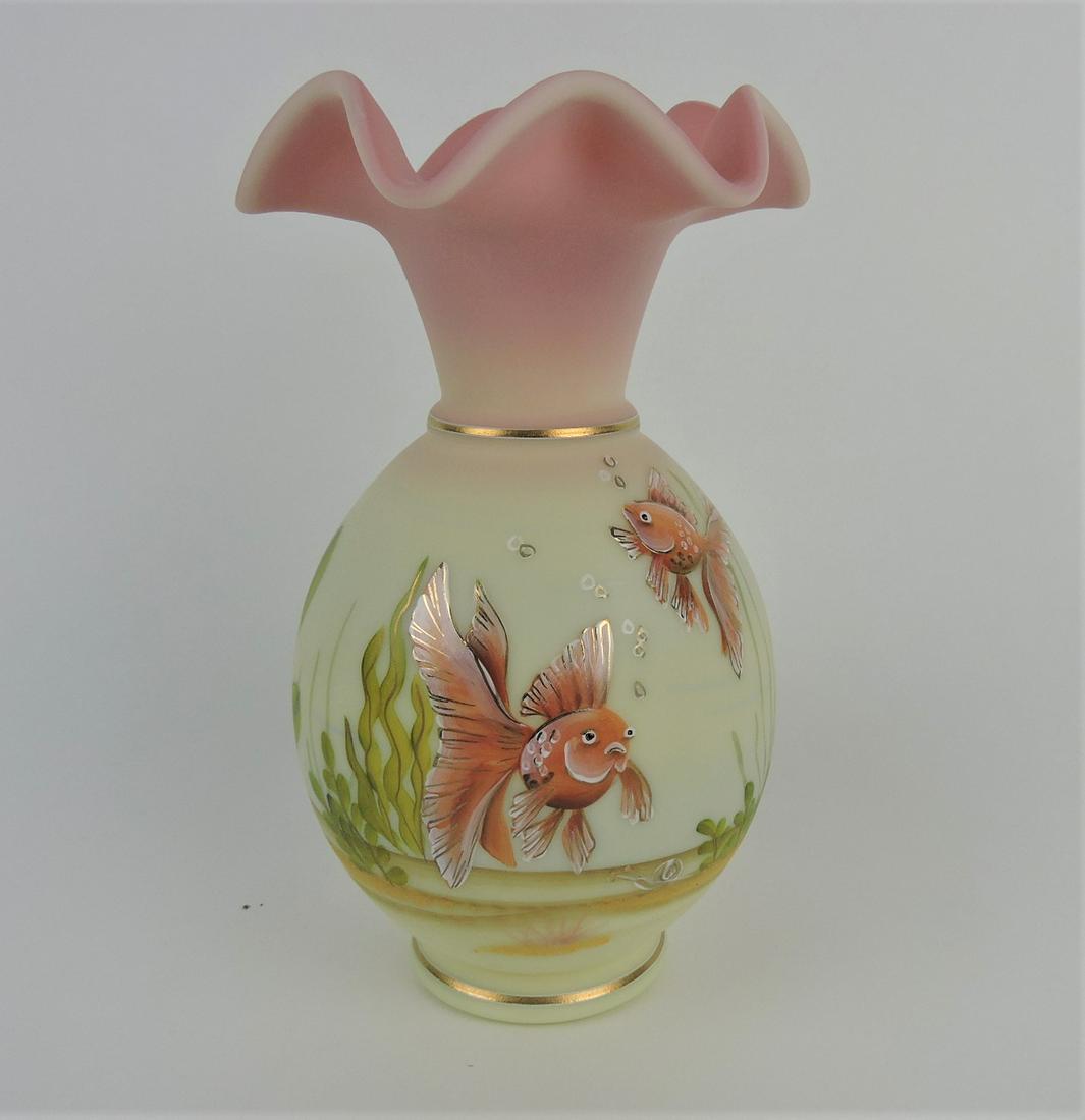 Fenton Burmese fish vase 9"