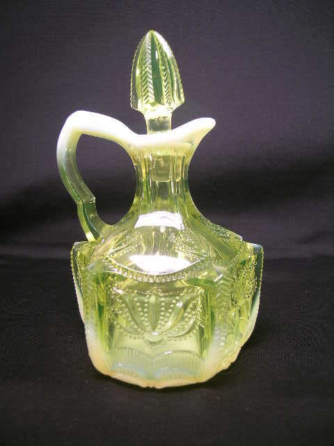 FENTON CACTUS YELLOW PATTERN GLASS CRUET