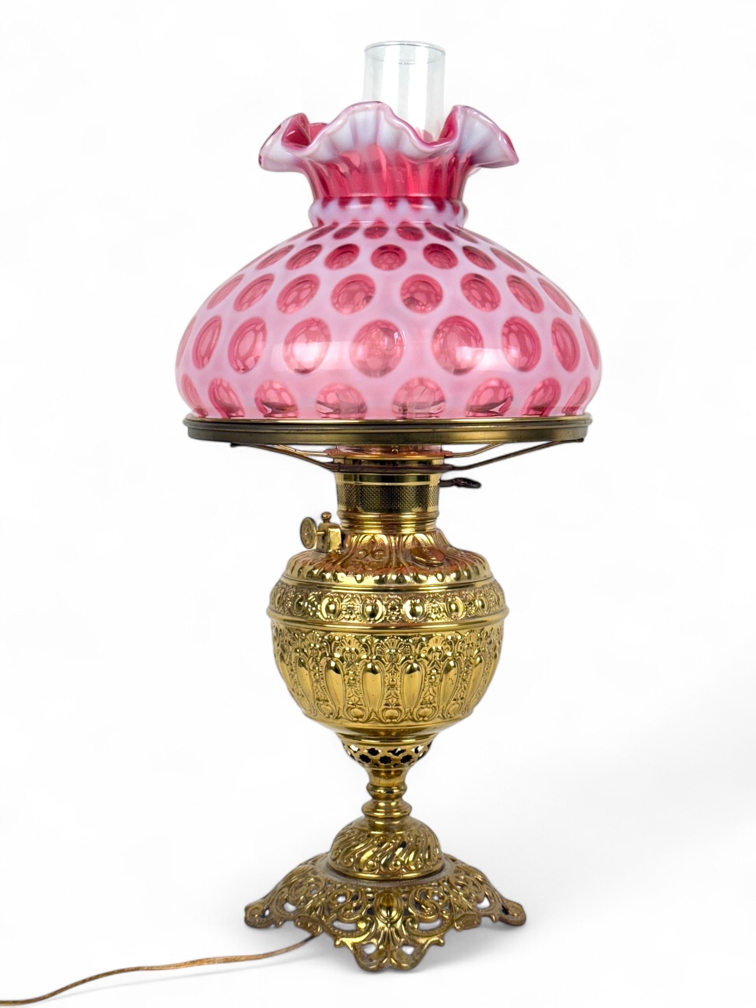FENTON CRANBERRY OPALESCENT GLASS COIN DOT OIL LAMP 20th Century Height 8.5". Height includingEldred's4.8(484)$505 days Left