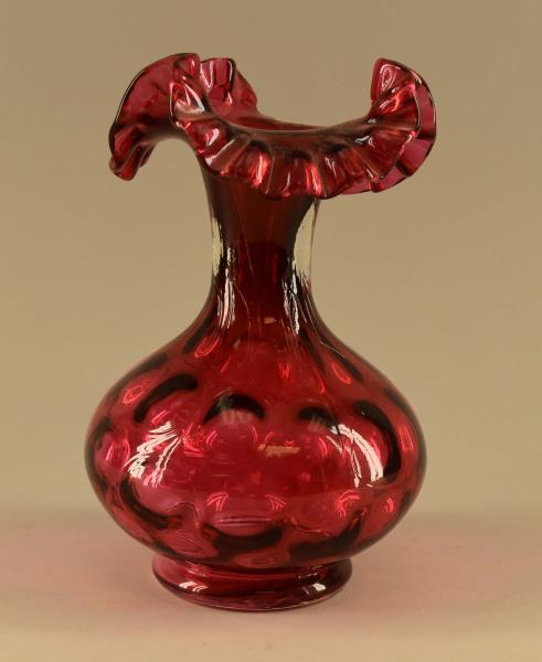 Fenton Glass Cranberry Diamond Optic Ruffled Melon Rose BowlSouthernaire Antiques & Auction4.3(11)$10(1 bid)Mar 05, 2026
