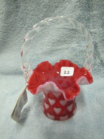 Fenton cranberry opal heart basket