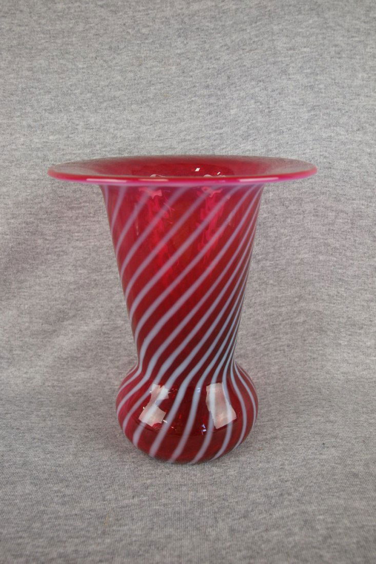 Val. St. Lambert Style Cranberry Swirl Glass Vase