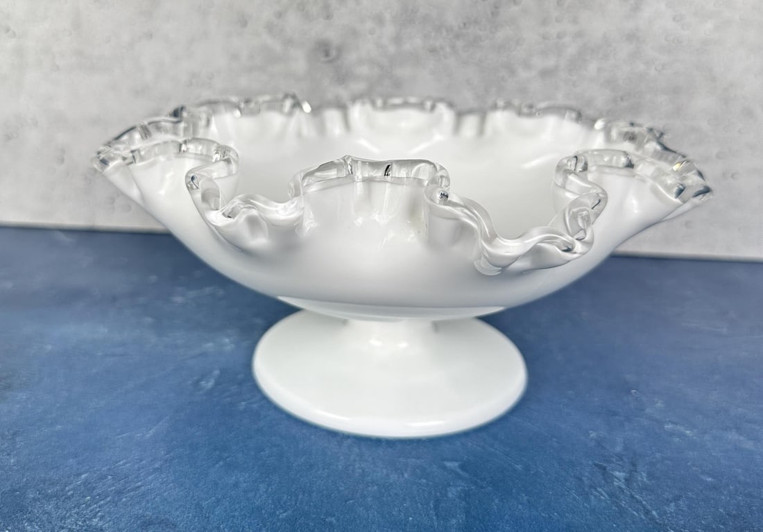 Fenton Glass Ruffled Silver Crest Candy Dish