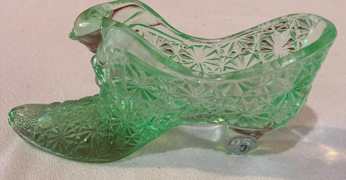 Fenton green glass slipper Daisy and button pattern 95