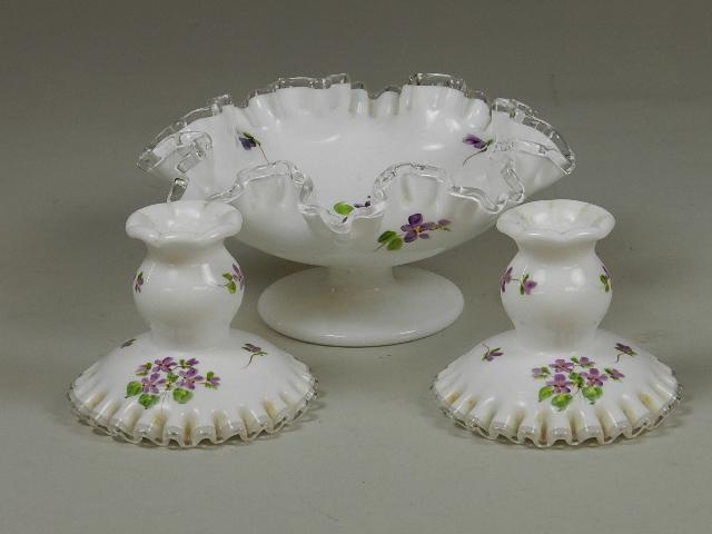Fenton Hand Painted Silver Crest 3 Piece Console Set