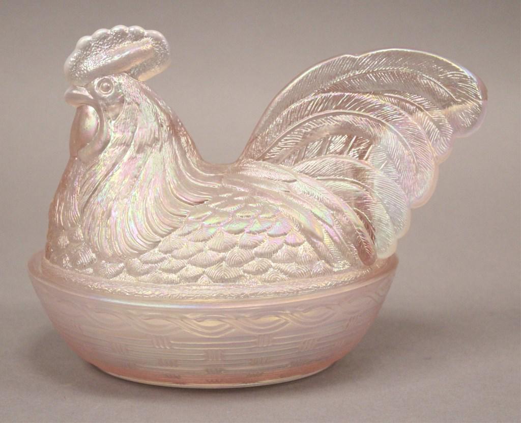 Fenton Pink Iridescent Rooster Dish