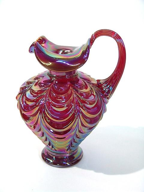 FENTON RED CARNIVAL EWER W/ EMBOSSED DRAPE