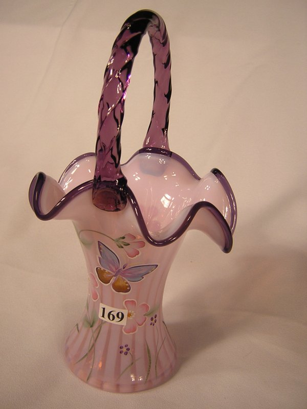 Fenton Ribbed Optic Opalescent Basket -- Designer