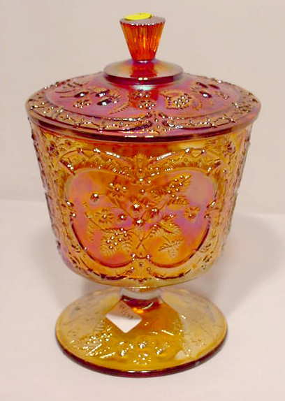 Fenton Rubigold Stawberry Covered Candy Jar