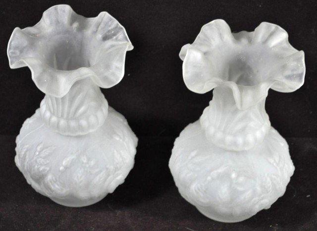 Pair Fenton White Milk Glass Blue Aqua Crest 8?? Vase w Crimped Edge Vintage 1940sChairish Auctions4.5(10.3k)$606 days Left