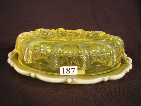 Fenton Topaz Cactus Pattern Covered Butter -- 7 1/