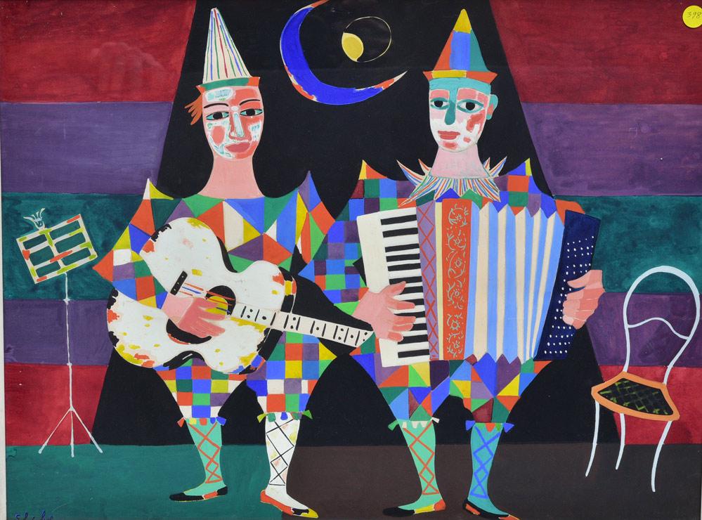 Jovan Obican Musicians Gouache on Paper