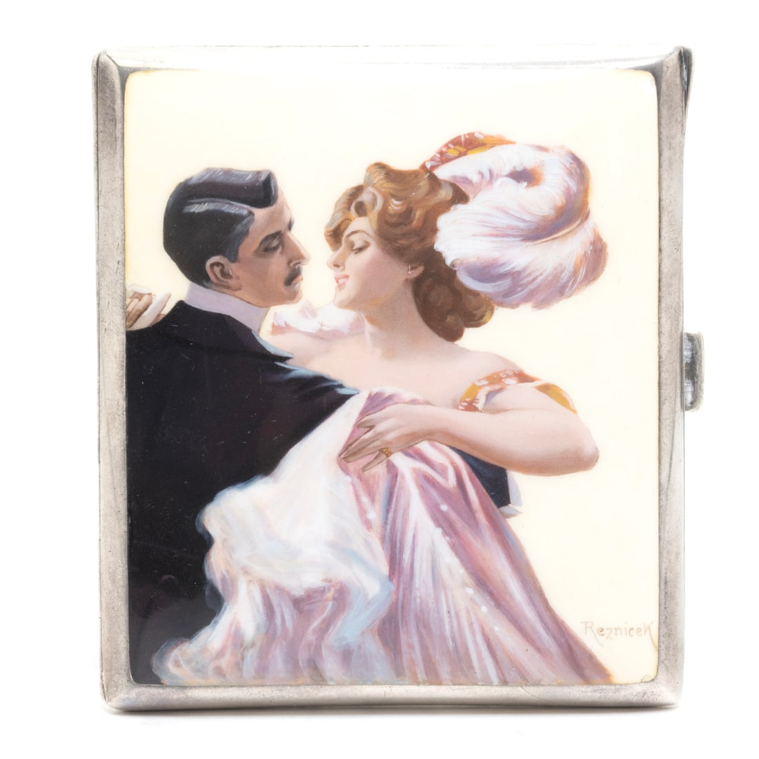 Ferdinand Von Reznicek Enameled Silver Cigarette Case