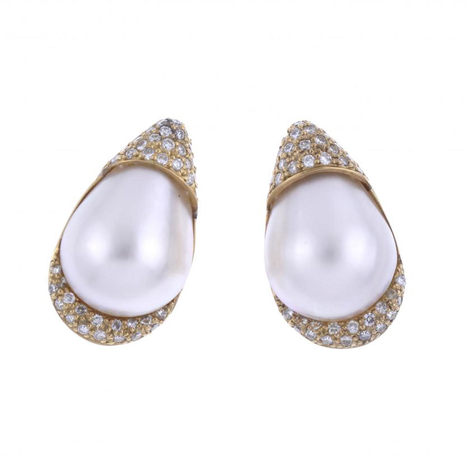Earrings - 18 kt. Yellow gold, Exclusive 18K Yellow Gold 5.60ct Diamond and Pearl Clip-On Earrings -Eastern European Art Gallery Inc$6,0002 days Left
