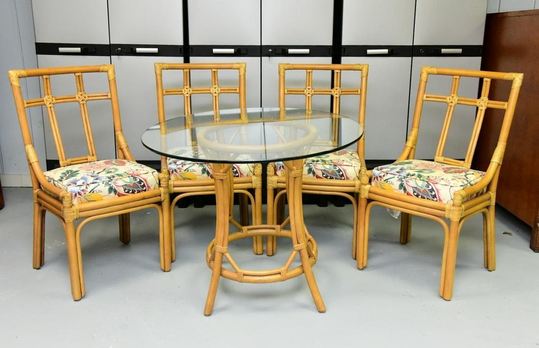 FAUX BAMBOO GAMES TABLE AND FOUR MATCHING CHAIRS HAVING LEAF DESIGN IN THE LEATHER C 1960.Kamelot Auctions4.4(346)$225(2 bids)Mar 24, 2026