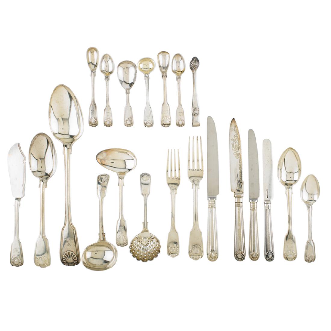 FIDDLE AND SHELL PATTERN ENGLISH SILVER FLATWARE